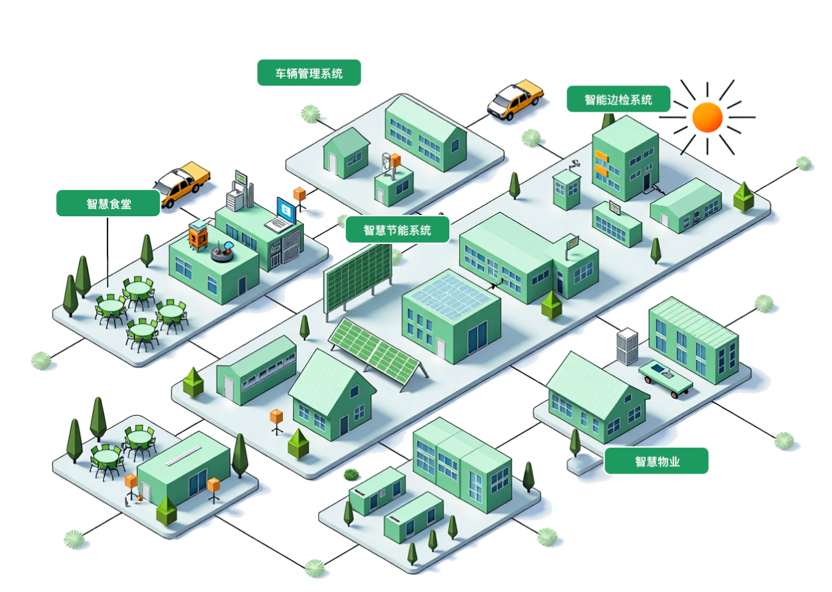 智慧后勤系统包含智慧食堂系统、人脸识别门禁/考勤、车辆管理系统、智能巡检系统、物业管理系统、智慧节能系统、智能资产管理系统、银行金融服务为一体,为企业提供全方位后勤智慧一体化服务。